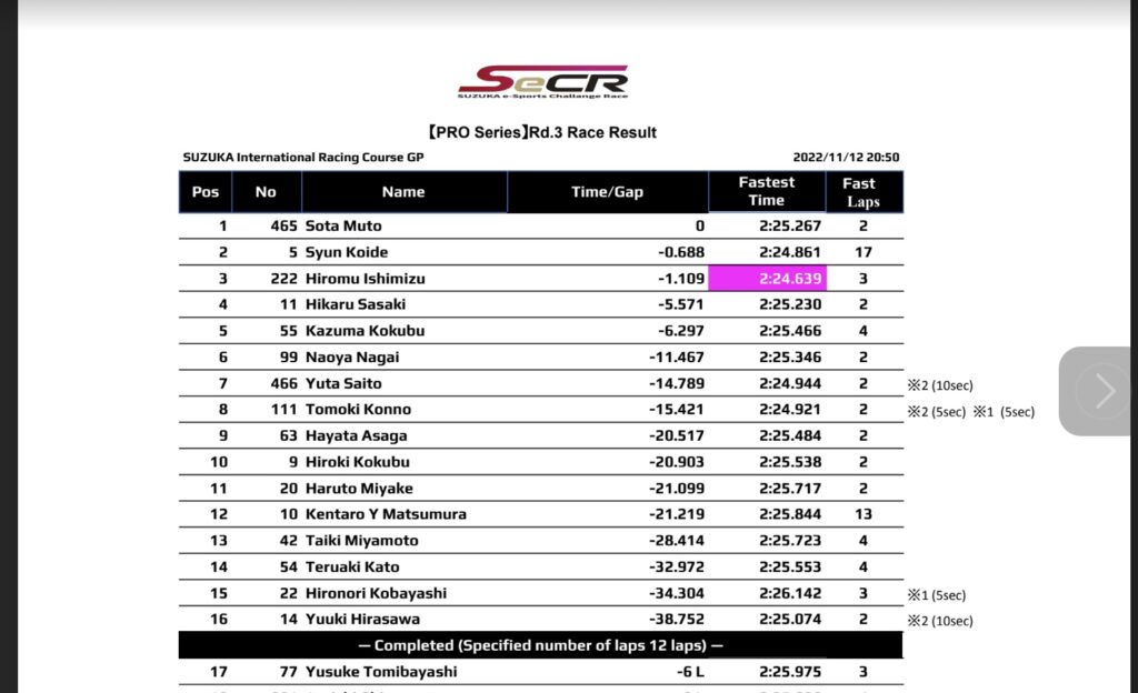 SUZUKA E-SPORTS CHALLENGE RACE(SeCR)
